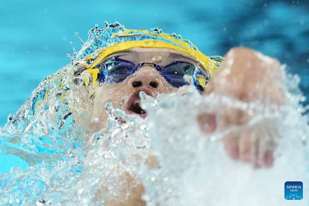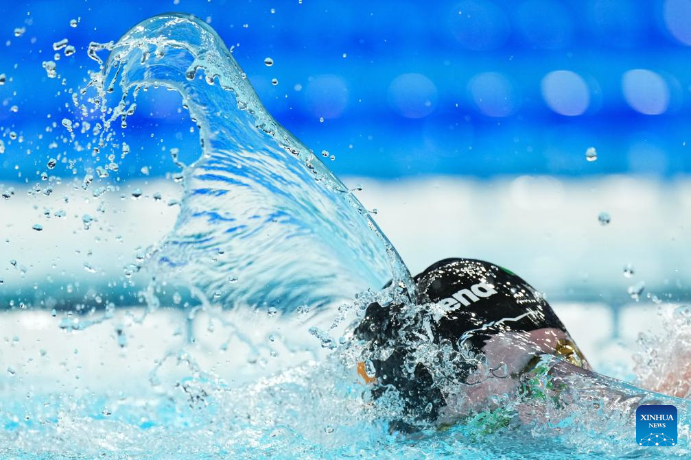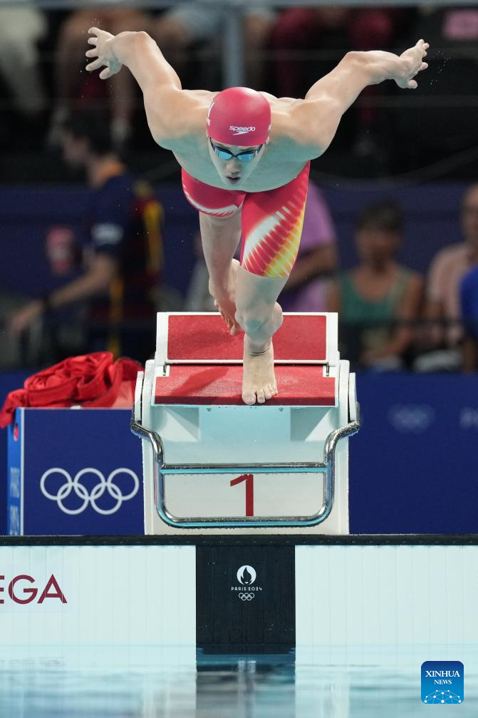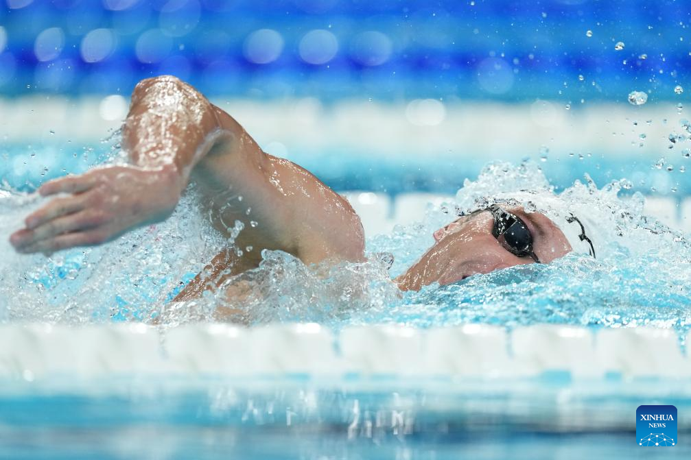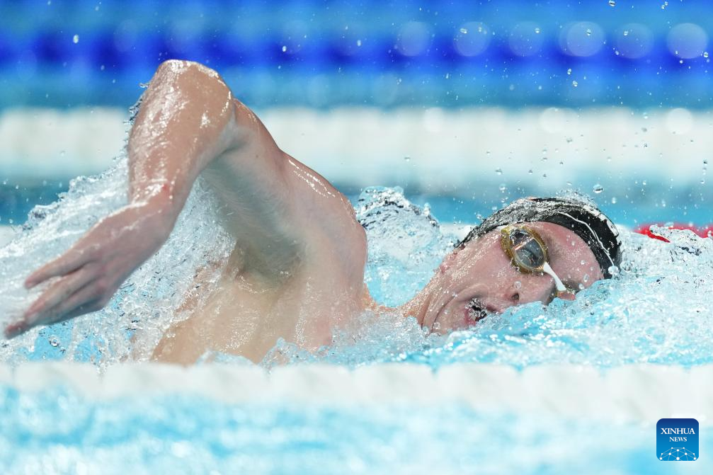 Daniel Wiffen of Ireland competes during the men's 1500m freestyle heats of swimming at the Paris 2024 Olympic Games in Paris, France, on Aug. 3, 2024. (Xinhua/Xue Yuge)