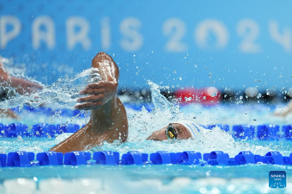 Gregorio Paltrinieri of Italy competes during the men's 1500m freestyle heats of swimming at the Paris 2024 Olympic Games in Paris, France, on Aug. 3, 2024. (Xinhua/Xue Yuge)