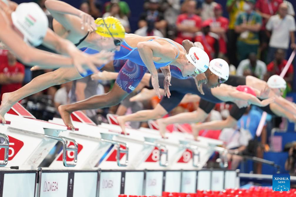 Katarzyna Wasick (3rd L) of Poland competes during the women's 50m freestyle heats of swimming at the Paris 2024 Olympic Games in Paris, France, on Aug. 3, 2024. (Xinhua/Xue Yuge)