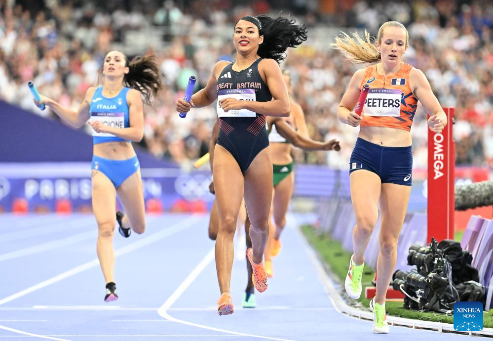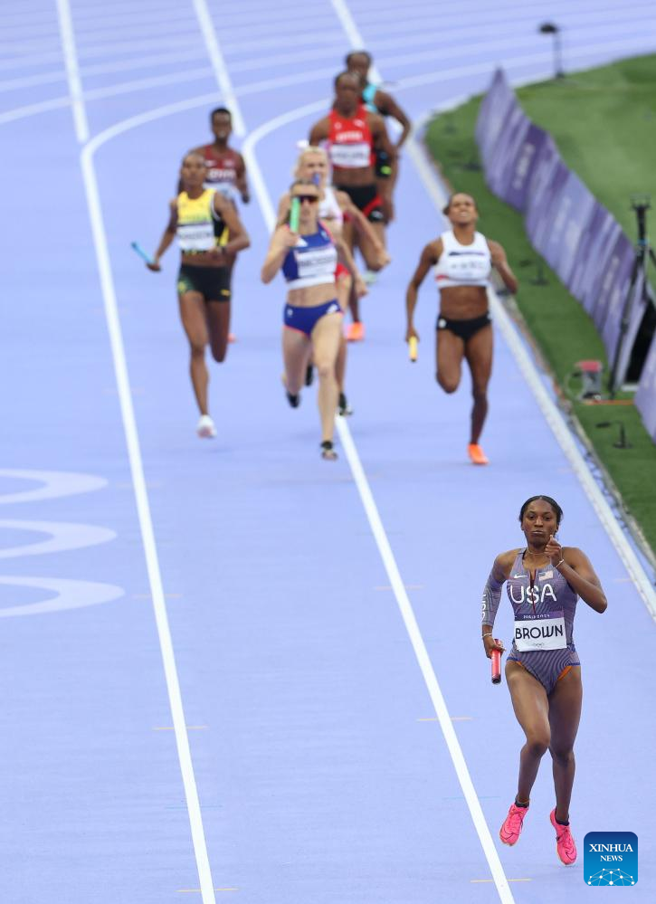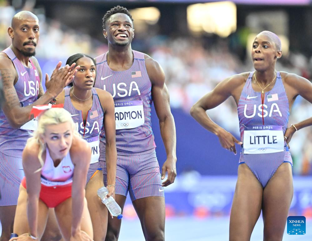 PARIS, Aug. 2 (Xinhua) -- Friday's Paris 2024 athletics action saw a new world record set by the United States in the 4x400m mixed relay heats at the Stade de France on Friday evening.