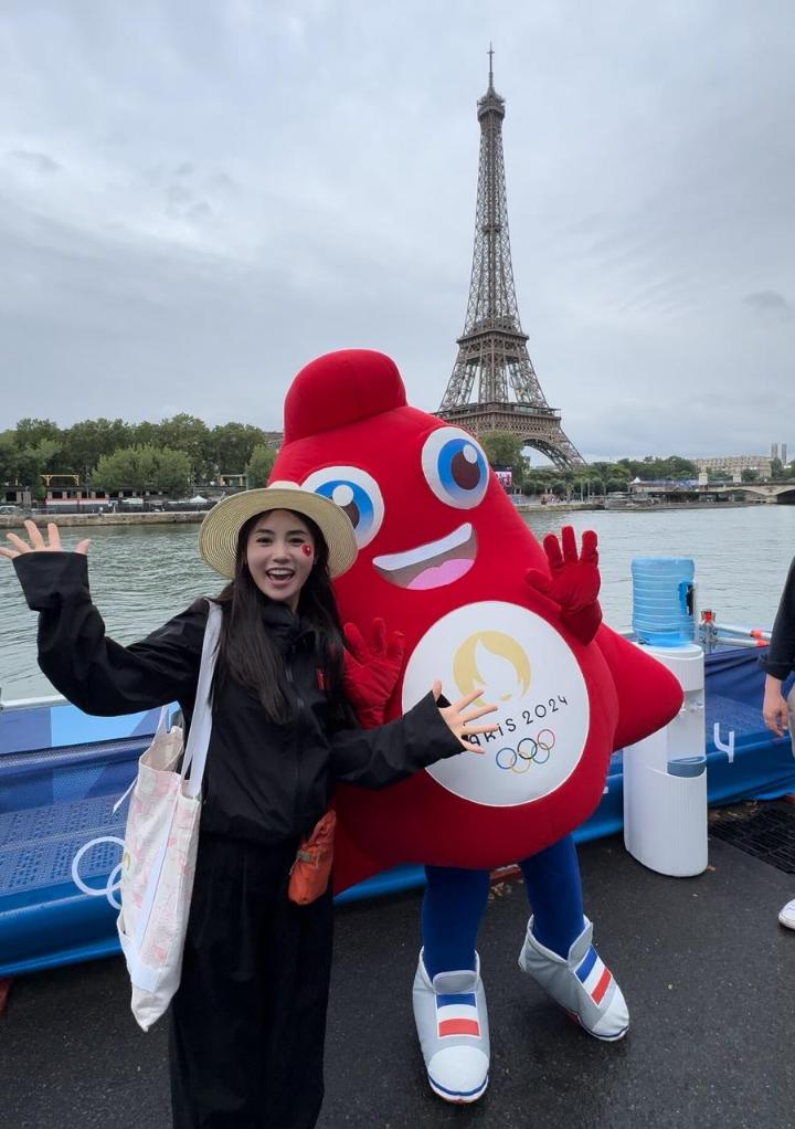 Xu Yan, a travel blogger from China's Xingtai, poses for a photo before the opening ceremony of the Paris 2024 Olympic Games in Paris, France, July 26, 2024. (Xinhua)