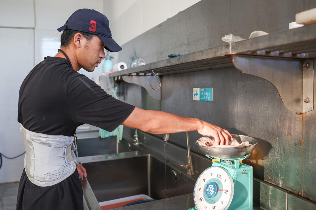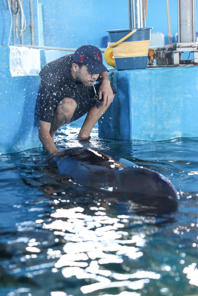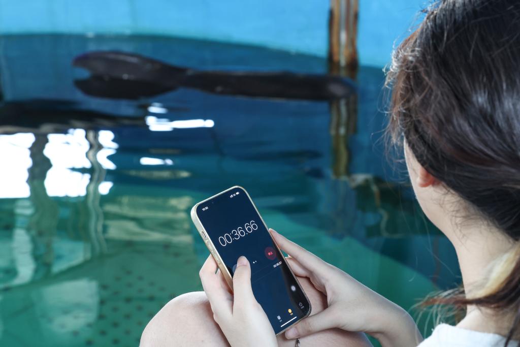 The short-finned pilot whale "Haili" eats at Sanya Haichang Animal Conservation Center in Sanya, south China's Hainan Province, Aug. 2, 2024. (Xinhua/Zhang Liyun)Volunteers observe the short-finned pilot whale "Haili" at Sanya Haichang Animal Conservation Center in Sanya, south China's Hainan Province, Aug. 2, 2024. (Xinhua/Zhang Liyun)The short-finned pilot whale "Haili" swims at Sanya Haichang Animal Conservation Center in Sanya, south China's Hainan Province, Aug. 2, 2024. (Xinhua/Zhang Liyun)The short-finned pilot whale "Haili" swims at Sanya Haichang Animal Conservation Center in Sanya, south China's Hainan Province, Aug. 2, 2024. (Xinhua/Zhang Liyun)The short-finned pilot whale "Haili" swims at Sanya Haichang Animal Conservation Center in Sanya, south China's Hainan Province, Aug. 2, 2024. (Xinhua/Zhang Liyun)A worker feeds the short-finned pilot whale "Haili" at Sanya Haichang Animal Conservation Center in Sanya, south China's Hainan Province, Aug. 2, 2024. (Xinhua/Zhang Liyun)A worker weighs the food for the short-finned pilot whale "Haili" at Sanya Haichang Animal Conservation Center in Sanya, south China's Hainan Province, Aug. 2, 2024. (Xinhua/Zhang Liyun)A volunteer records the breathing rate of the short-finned pilot whale "Haili" at Sanya Haichang Animal Conservation Center in Sanya, south China's Hainan Province, Aug. 2, 2024. (Xinhua/Zhang Liyun)