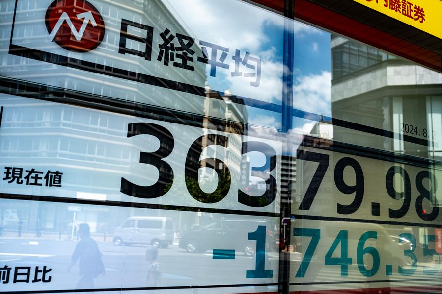 TOKYO, Aug. 3 (Xinhua) -- Tokyo stocks closed sharply lower on Friday, with Japan's benchmark Nikkei stock index experiencing the second-largest drop in its history.