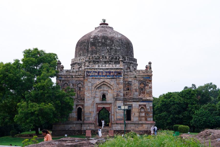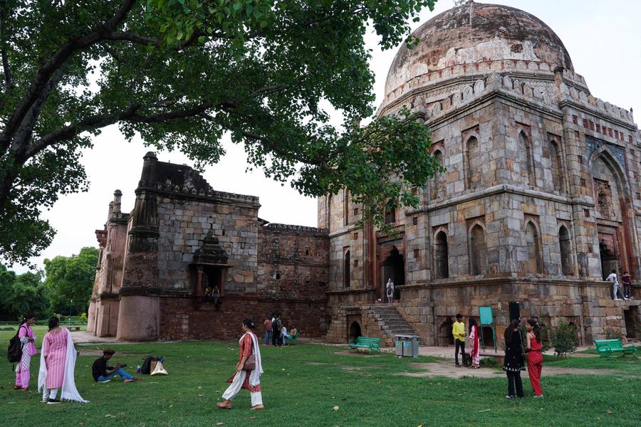 NEW DELHI, Aug. 3 (Xinhua) -- Spreading over 90 acres in India's capital New Delhi, Lodi Gardens contains a large number of architectural ruins from the Delhi Sultanate period. This free city park has become a popular spot for New Delhi citizens.