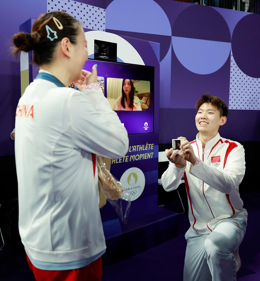 Zheng Siwei (R)/Huang Yaqiong of China celebrate victory after the badminton mixed doubles gold medal match against Kim Won Ho/Jeong Na Eun of South Korea at the Paris 2024 Olympic Games in Paris, France, Aug. 2, 2024. (Xinhua/Ren Zhenglai)Chinese badminton player Liu Yuchen (R) makes a marriage proposal to gold medalist Huang Yaqiong after the mixed doubles gold medal match of badminton between Zheng Siwei/Huang Yaqiong of China and Kim Won Ho/Jeong Na Eun of South Korea at the Paris 2024 Olympic Games in Paris, France, Aug. 2, 2024. (Xinhua/Ren Zhenglai)Joshua Cheptegei of Uganda celebrates after winning gold in the men's 10000m final of athletics with a new Olympic record at the Paris 2024 Olympic Games in Paris, France, Aug. 2, 2024. (Xinhua/Lui Siu Wai)Ge Manqi of China competes during the women's 100m round 1 of Athletics at the Paris 2024 Olympic Games in Paris, France, Aug. 2, 2024. (Xinhua/Song Yanhua)Josh Liendo of Canada competes during the men's 100m butterfly semifinals of swimming at Paris 2024 Olympic Games in Paris, France, on Aug. 2, 2024. (Xinhua/Xia Yifang)Ben Maher of Britain, riding Dallas Vegas Batilly, competes during the jumping team final of equestrian at the Paris 2024 Olympic Games in Versailles, France, Aug. 2, 2024. (Xinhua/Yang Lei)An aerial drone photo taken on July 31, 2024 shows a view of Qinzhou Port in Qinzhou, south China's Guangxi Zhuang Autonomous Region. As of Aug. 2 this year, more than 500,000 twenty-foot equivalent unit (TEU) containers for rail-sea intermodal transportation have been delivered via the New International Land-Sea Trade Corridor, the highest level for the same period in all years. (Xinhua/Zhang Ailin)This photo taken on Aug. 2, 2024 shows Turkish flags at half-mast in Istanbul, Türkiye. Turkish President Recep Tayyip Erdogan on Thursday declared a day of national mourning on Friday over the killing of Hamas Politburo chief Ismail Haniyeh. (Xinhua/Liu Lei)Supporters attend the funeral of Fouad Shokor in Beirut, Lebanon, Aug. 1, 2024. Hezbollah Secretary-General Sayyed Hassan Nasrallah announced that the Lebanon-based military group and party will avenge the assassinations of Fouad Shokor, a senior military advisor to Nasrallah, in Beirut and Hamas Politburo Chief Ismail Haniyeh in Tehran. (Xinhua/Bilal Jawich)A dressed-up competitor performs during the King and Queen Showcase of the 2024 Toronto Caribbean Carnival in Toronto, Canada, Aug. 1, 2024. (Photo by Zou Zheng/Xinhua)A chariot is pulled during the celebration of Rato Machindranath Festival in Lalitpur, Nepal, Aug. 1, 2024. Local people worship Rato Machindranath, the god of rain, for good harvest. (Photo by Hari Maharjan/Xinhua)■