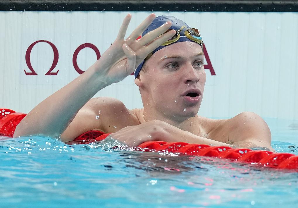 PARIS, Aug. 2 (Xinhua) -- Local hero Leon Marchand clinched his fourth gold medal of the Paris Olympics by winning the men's 200m individual medley final here on Friday.