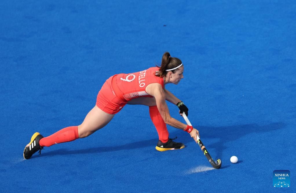 Amy Costello of Great Britain competes during the women's pool B match of hockey between Great Britain and Argentina in Colombes, northwest suburbs of Paris, France, Aug. 3, 2024. (Xinhua/Ren Pengfei)
