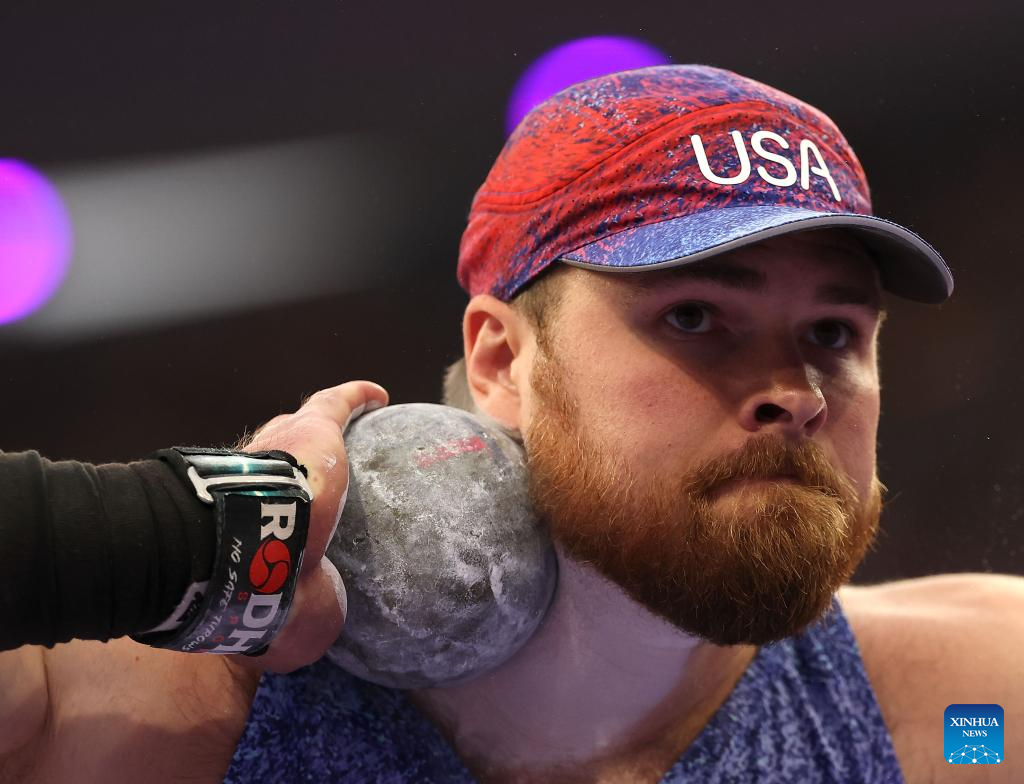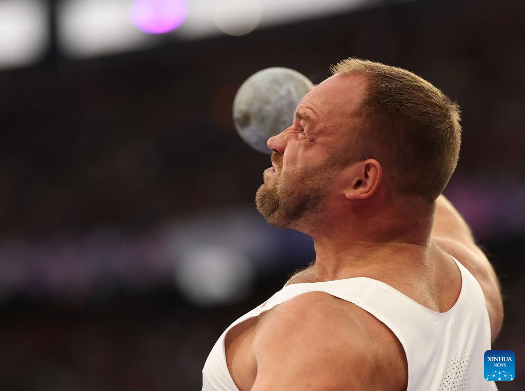 Payton Otterdahl of the United States compete during the men's shot put final of athletics at the Paris 2024 Olympic Games in Paris, France, Aug. 3, 2024. (Xinhua/Li Ming)