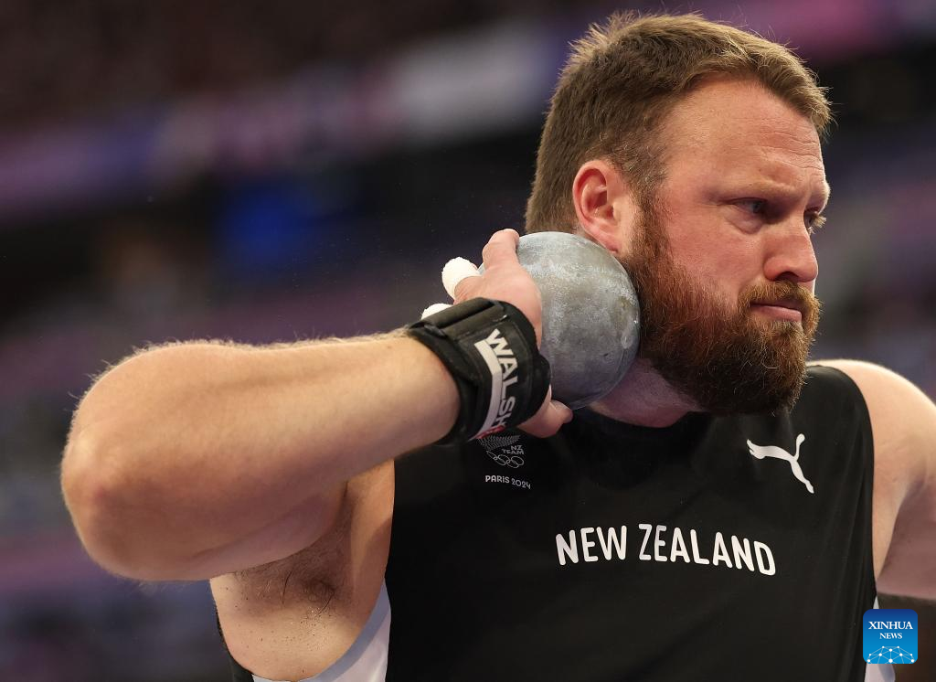 Tom Walsh of New Zealand competes during the men's shot put final of athletics at the Paris 2024 Olympic Games in Paris, France, Aug. 3, 2024. (Xinhua/Li Ming)