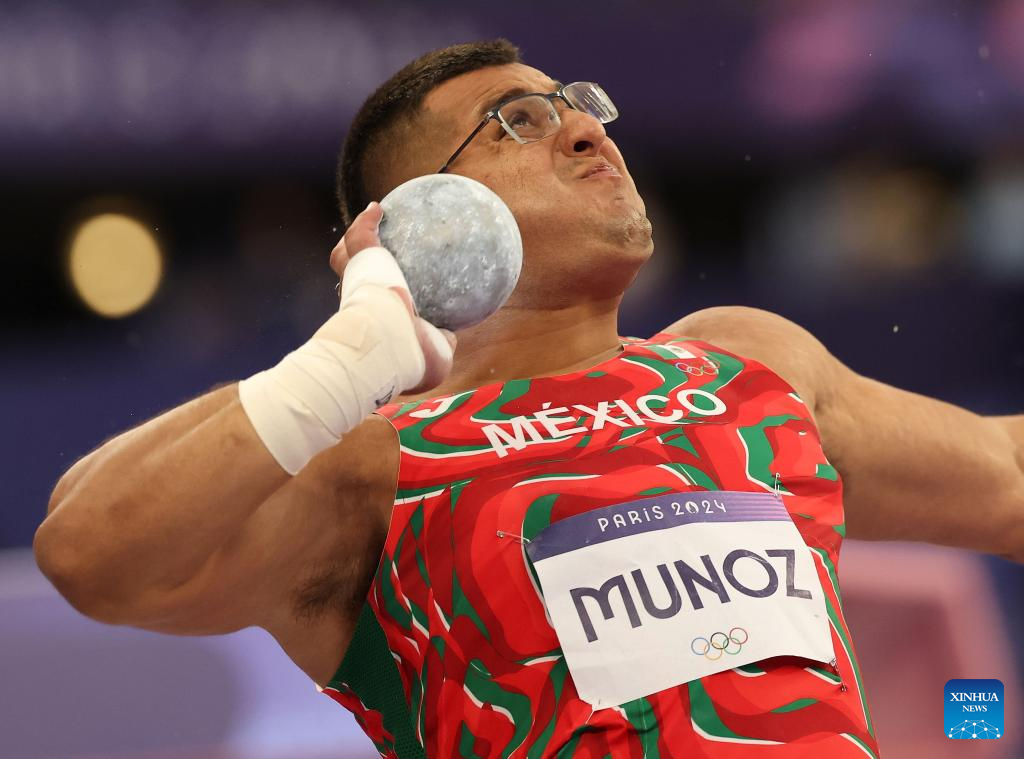Uziel Munoz of Mexico competes during the men's shot put final of athletics at the Paris 2024 Olympic Games in Paris, France, Aug. 3, 2024. (Xinhua/Li Ming)