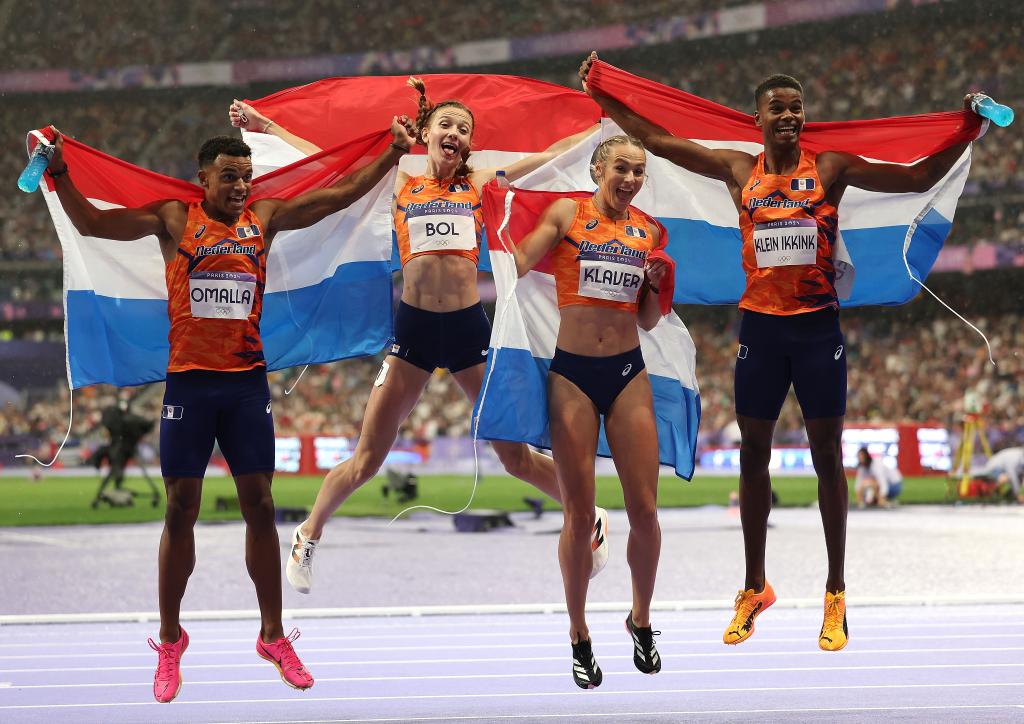 However, as the rain lashed down in the Stade de France, the U.S. reckoned without a supreme effort from Dutch anchor Femke Bol, who ran 47.93s - just 0.33s shy of the women's 400m world record - to overhaul U.S. anchor Kaylyn Brown in the final 50 meters to secure the Netherlands' win in a European record time of 3:07.43s.