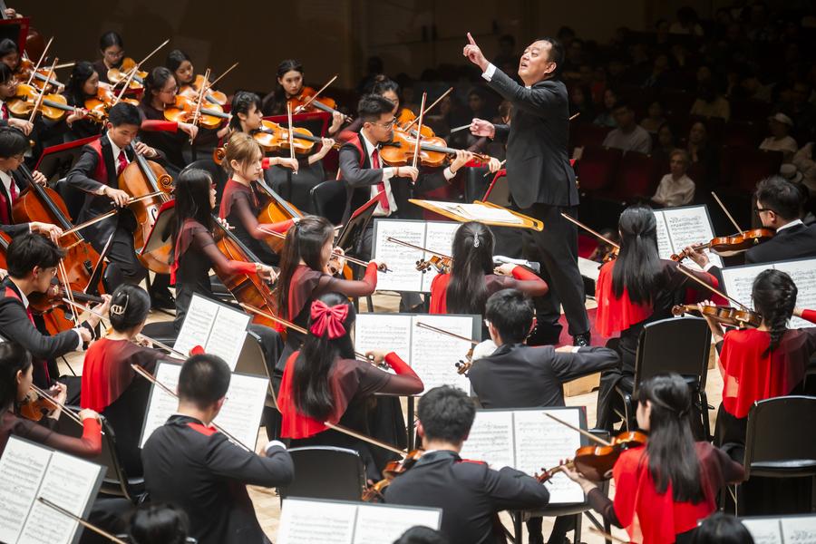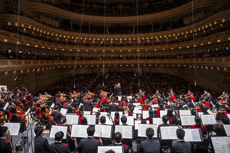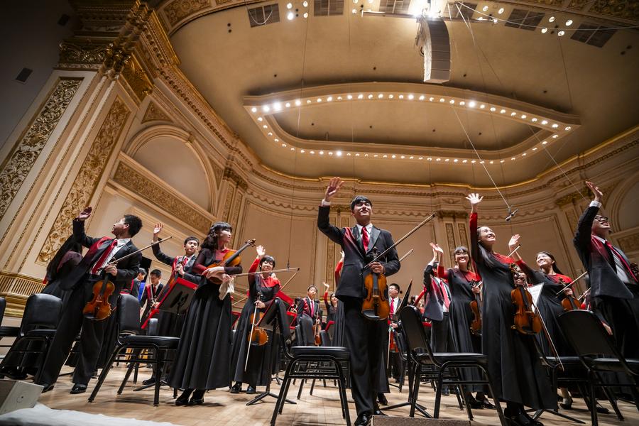 NEW YORK, Aug. 5 (Xinhua) -- Young musicians from China staged a performance at Carnegie Hall on Sunday, the undisputed highlight of their week-long visit to the Big Apple during World Orchestra Week (WOW!).