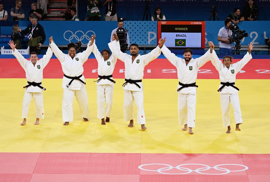 This year, the company has pioneered the integration of a cutting-edge smart chip, measuring under 10 mm in length, into the judo mats in Paris. Wang Wei, the chief engineer at Taishan's technology center, said that conventional data collection methods relied on wearable devices, which had the potential to impact athletes' performances. The smart chip embedded within the judo mat can help obtain non-intrusive data and connect 5G technology, offering more precise and insightful analyses for training and competitive scenarios.