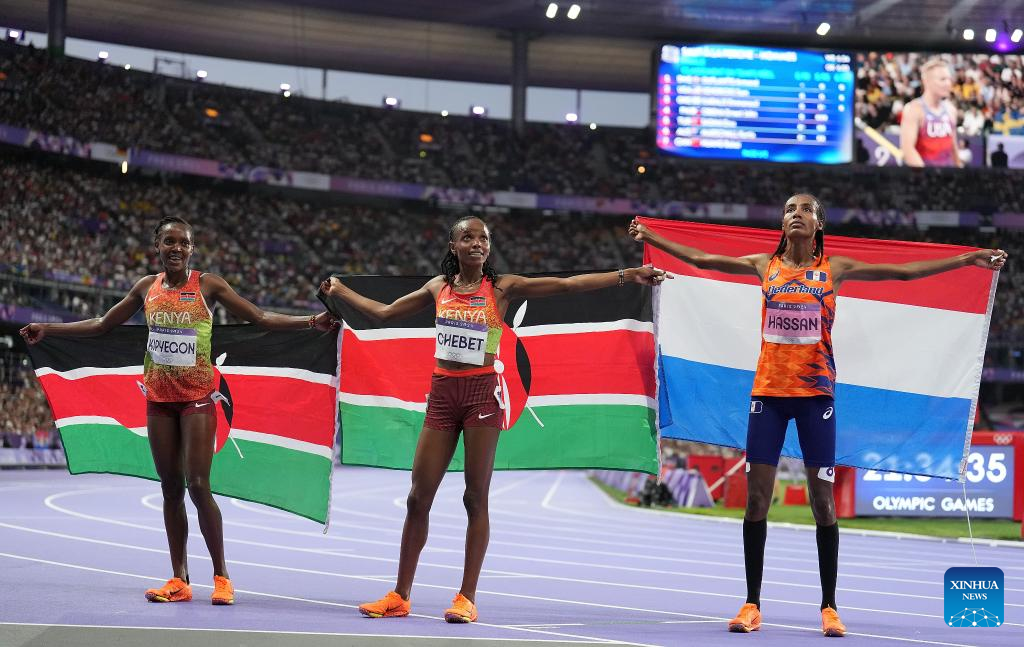 PARIS, Aug. 5 (Xinhua) -- Kenya's Beatrice Chebet made a storming finish to win gold in the women's 5000m at the Paris Olympics on Monday.