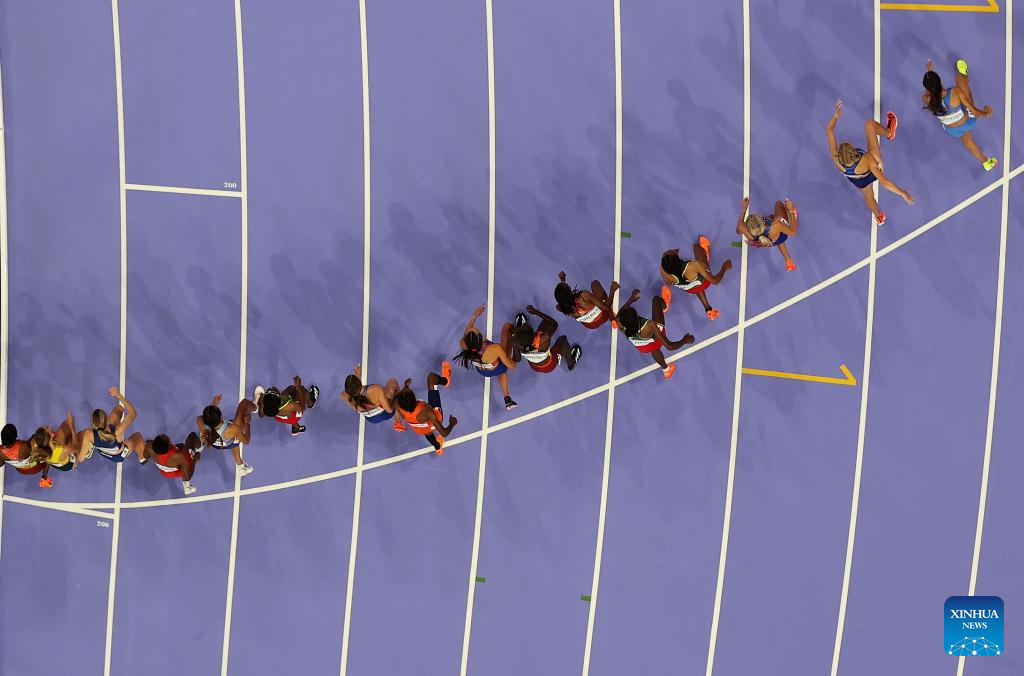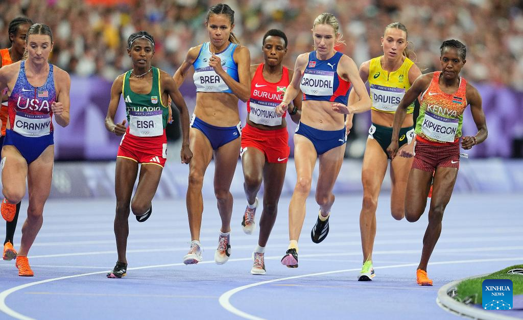 Athletes compete during the women's 5000m final of Athletics at the Paris 2024 Olympic Games in Paris, France, Aug. 5, 2024. (Xinhua/Li Gang)