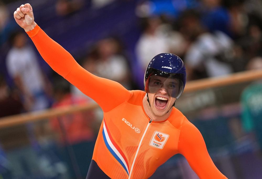 Dutch men's team sprint trio set a new world record of 40.949 seconds, defeating Britain for the Olympic gold at Paris 2024.