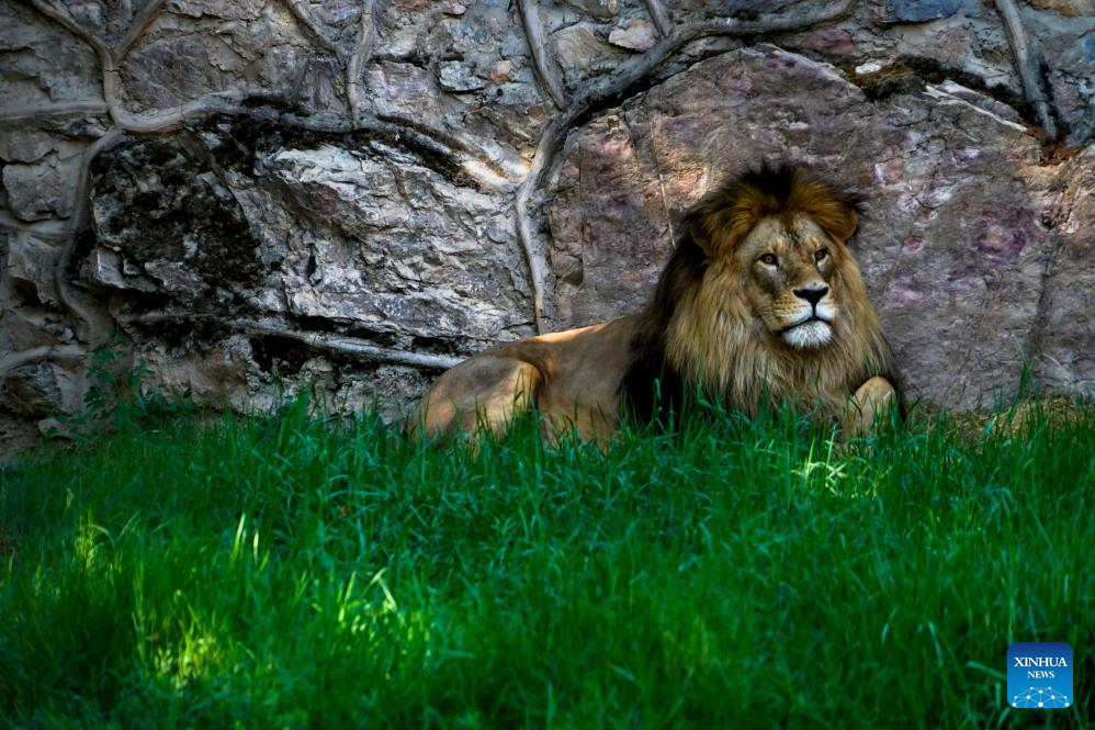 A lion cools off in the shade at the Tashkent Zoo in Tashkent, Uzbekistan, Aug. 6, 2024.