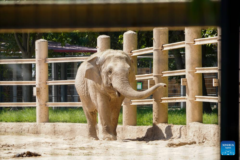 A baby elephant takes a walk at the Tashkent Zoo in Tashkent, Uzbekistan, Aug. 6, 2024.