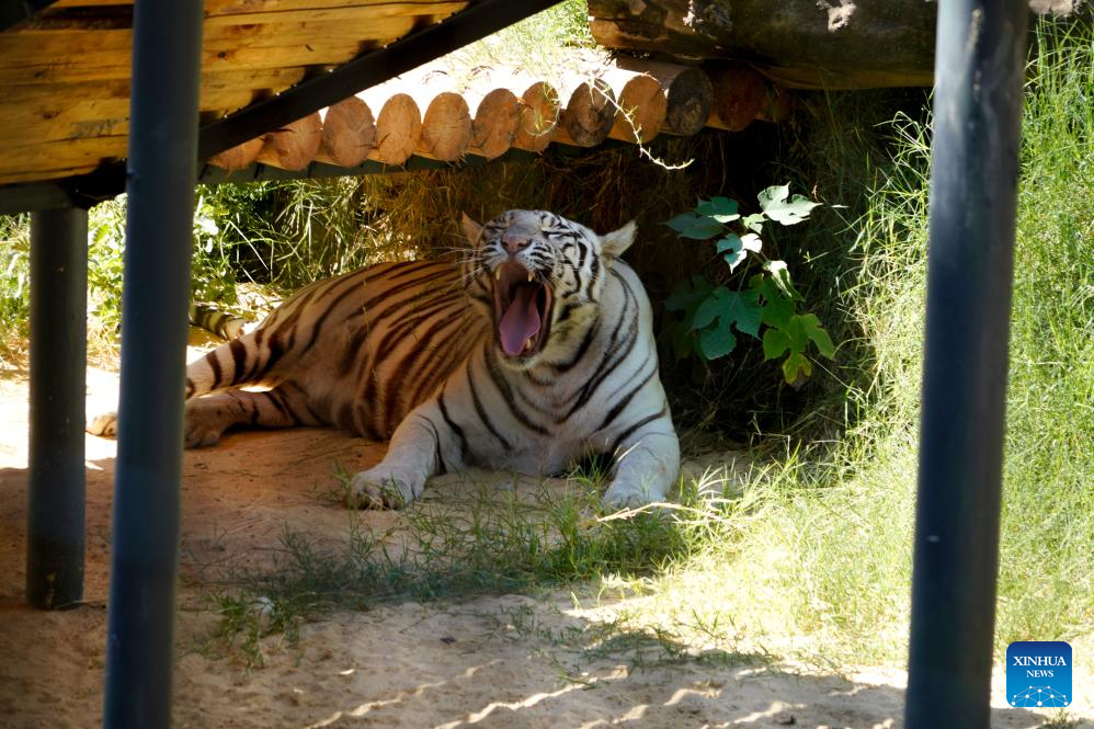 A tiger cools off in the shade at the Tashkent Zoo in Tashkent, Uzbekistan, Aug. 6, 2024.
