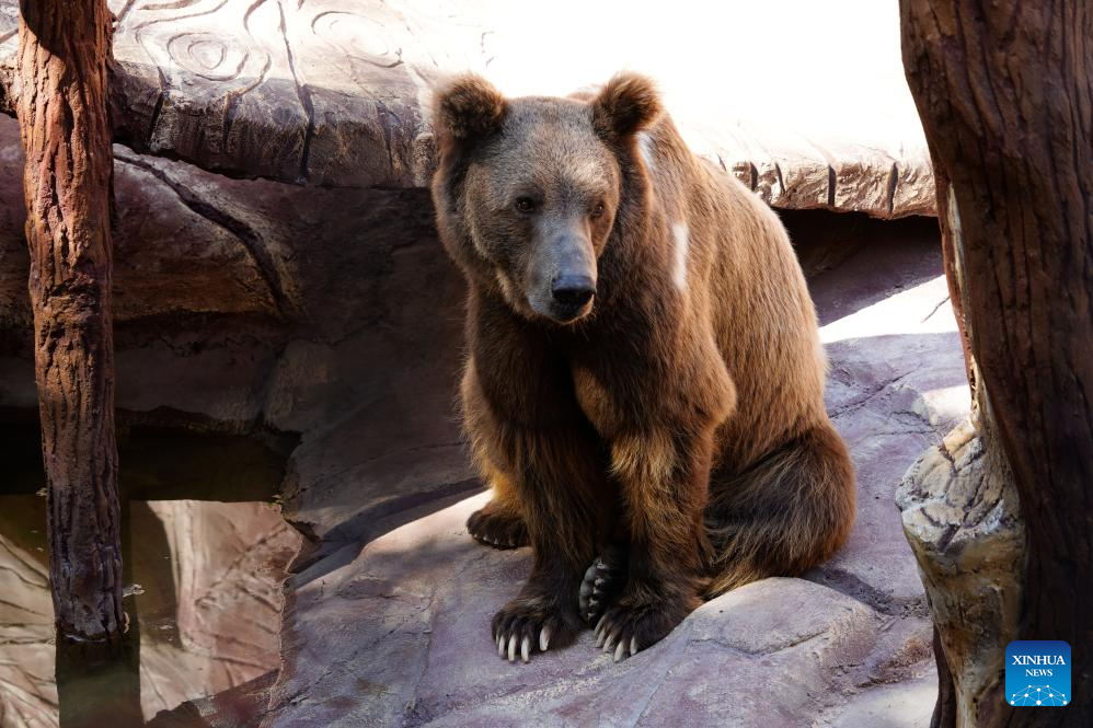 A bear cools off in the shade at the Tashkent Zoo in Tashkent, Uzbekistan, Aug. 6, 2024.