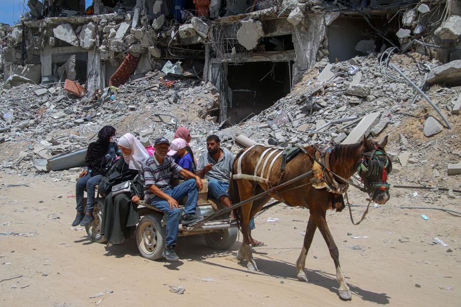 GAZA, Aug. 7 (Xinhua) -- For months, the six-member family of Palestinian man Emad Abu Hamad from Khan Younis city in the southern Gaza Strip has been reeling from their daily suffering caused by the ongoing war.