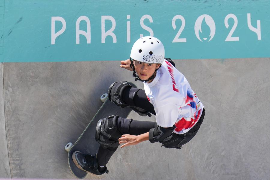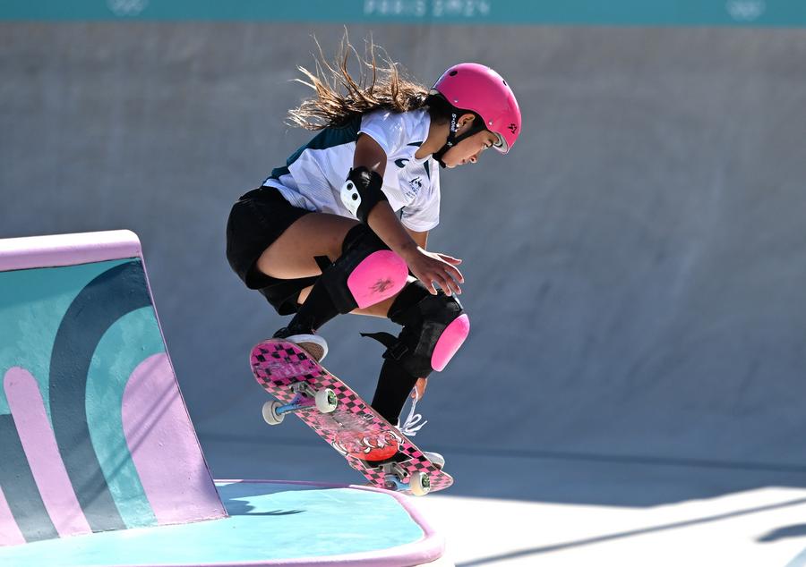 PARIS, Aug. 6 (Xinhua) -- Australia's Arisa Trew claimed the gold medal in skateboarding women's park event, while China's 11-year-old Zheng Haohao made her Olympic debut, finishing 18th in the preliminaries.