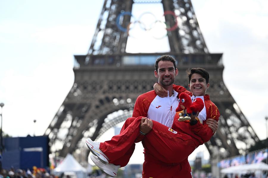 PARIS, Aug. 7 (Xinhua) -- Alvaro Martin and Maria Perez claimed Spain's first athletics gold medal of the Paris Olympics by winning the mixed marathon race walk relay on Wednesday.