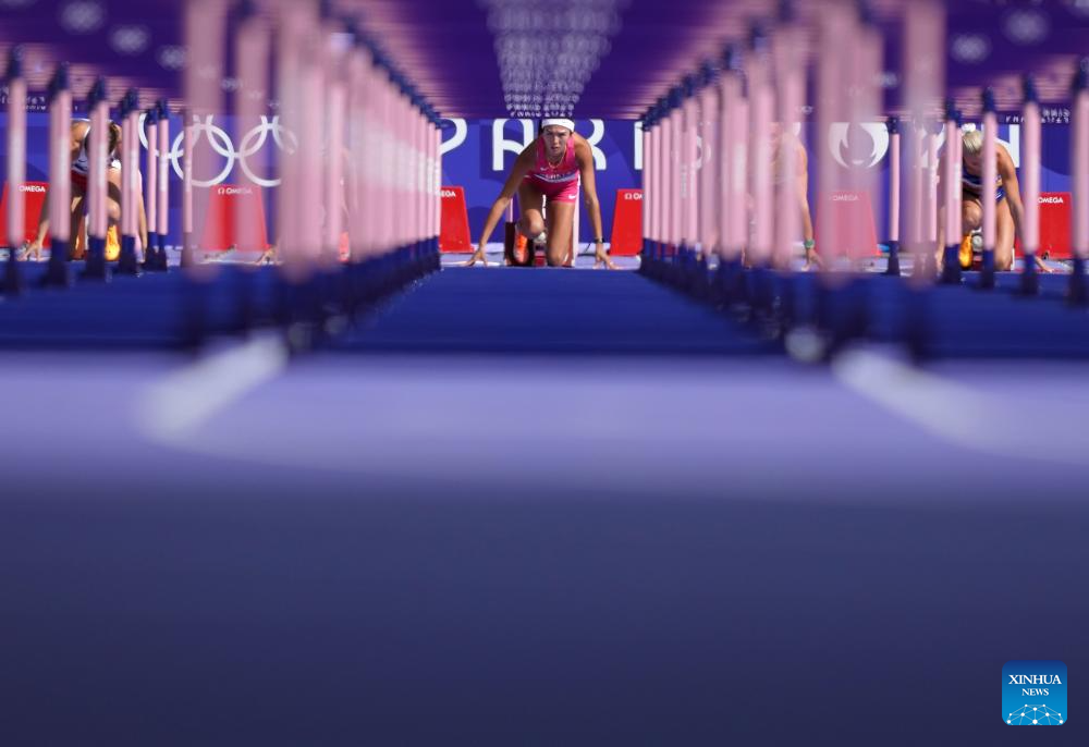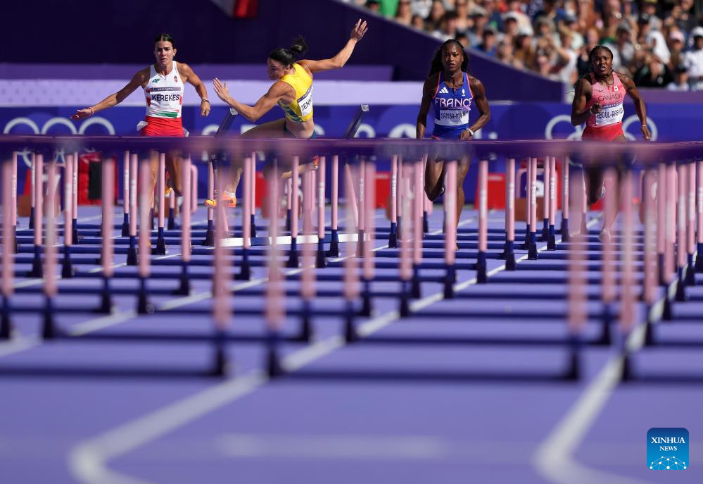 Michelle Jennek of Australia competes during the women's 100m hurdles round 1 of Athletics at the Paris 2024 Olympic Games in Paris, France, Aug. 7, 2024. (Xinhua/Lui Siu Wai)
