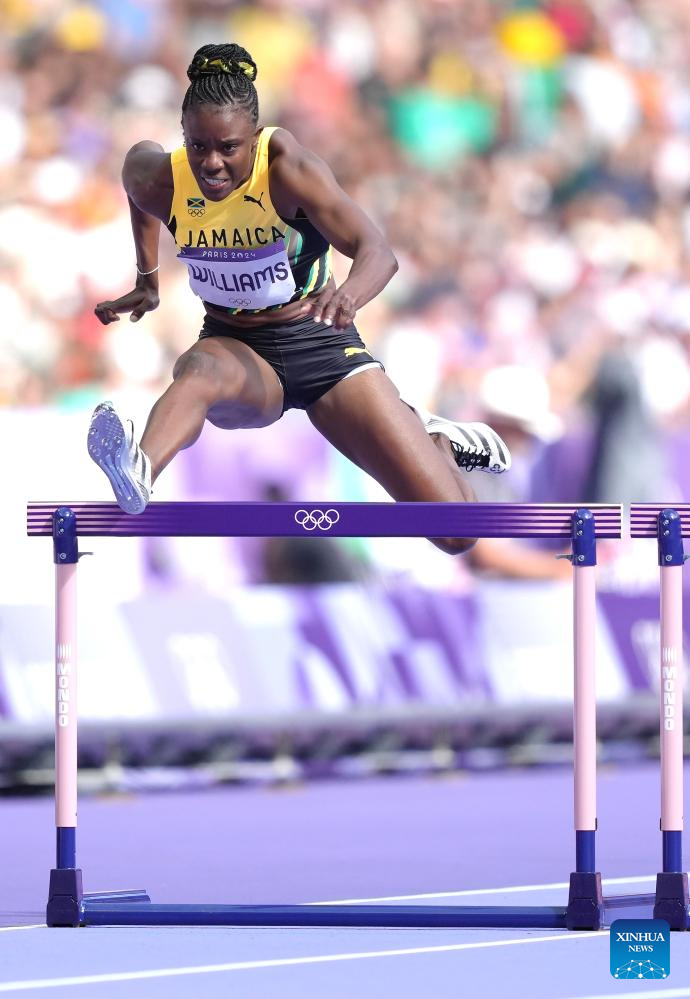 Danielle Williams of Jamaica competes during the women's 100m hurdles round 1 of Athletics at the Paris 2024 Olympic Games in Paris, France, Aug. 7, 2024. (Xinhua/Lui Siu Wai)