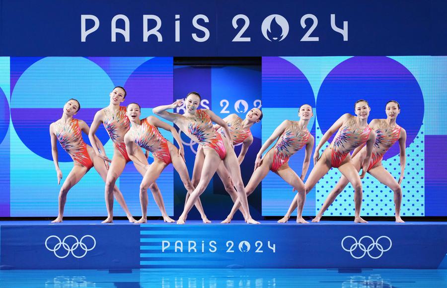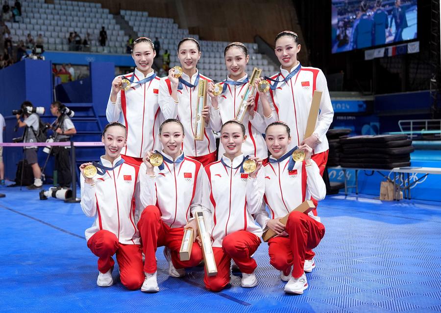 PARIS, Aug. 7 (Xinhua) -- After leading the first two routines in the team event, China claimed its first ever gold medal in artistic swimming at the Paris Olympics after the acrobatic routine here on Wednesday.