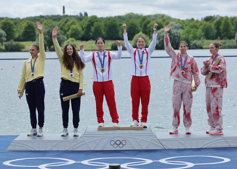 Xu Shixiao (L, front)/Sun Mengya of China compete during the women's canoe double 500m final of canoe sprint at the Paris 2024 Olympic Games in Vaires-sur-Marne, France, on Aug. 9, 2024. (Xinhua/Shen Bohan)Xu Shixiao (L)/Sun Mengya of China compete during the women's canoe double 500m final of canoe sprint at the Paris 2024 Olympic Games in Vaires-sur-Marne, France, on Aug. 9, 2024. (Xinhua/Shen Bohan)Xu Shixiao (L)/Sun Mengya of China compete during the women's canoe double 500m final of canoe sprint at the Paris 2024 Olympic Games in Vaires-sur-Marne, France, on Aug. 9, 2024. (Xinhua/Du Yu)Xu Shixiao (L)/Sun Mengya of China compete during the women's canoe double 500m final of canoe sprint at the Paris 2024 Olympic Games in Vaires-sur-Marne, France, on Aug. 9, 2024. (Xinhua/Du Yu)Xu Shixiao (L)/Sun Mengya of China compete during the women's canoe double 500m final of canoe sprint at the Paris 2024 Olympic Games in Vaires-sur-Marne, France, on Aug. 9, 2024. (Xinhua/Du Yu)Gold medalists Xu Shixiao (R)/Sun Mengya of China celebrate after the women's canoe double 500m final of canoe sprint at the Paris 2024 Olympic Games in Vaires-sur-Marne, France, on Aug. 9, 2024. (Xinhua/Shen Bohan)Gold medalists Xu Shixiao/Sun Mengya of China, silver medalists Liudmyla Luzan/Anastasiia Rybachok of Ukraine and bronze medalists Sloan Mackenzie/Katie Vincent of Canada attend the awarding ceremony after the women's canoe double 500m final of canoe sprint at the Paris 2024 Olympic Games in Vaires-sur-Marne, France, on Aug. 9, 2024. (Xinhua/Shen Bohan)Gold medalists Xu Shixiao (R)/Sun Mengya of China attend the awarding ceremony after the women's canoe double 500m final of canoe sprint at the Paris 2024 Olympic Games in Vaires-sur-Marne, France, on Aug. 9, 2024. (Xinhua/Shen Bohan)Gold medalists Xu Shixiao (L)/Sun Mengya of China celebrate after the women's canoe double 500m final of canoe sprint at the Paris 2024 Olympic Games in Vaires-sur-Marne, France, on Aug. 9, 2024. (Xinhua/Shen Bohan)■