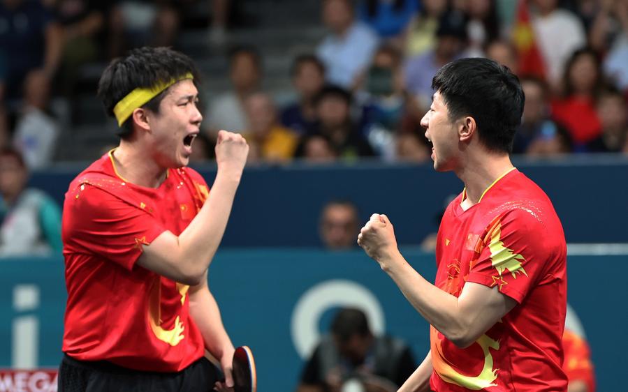 PARIS, Aug. 8 (Xinhua) -- China's men's and women's table tennis teams made the finals after sweeping past their French and South Korean opponents respectively, with decisive 3-0 victories in the team event semifinals at Paris 2024 on Thursday.