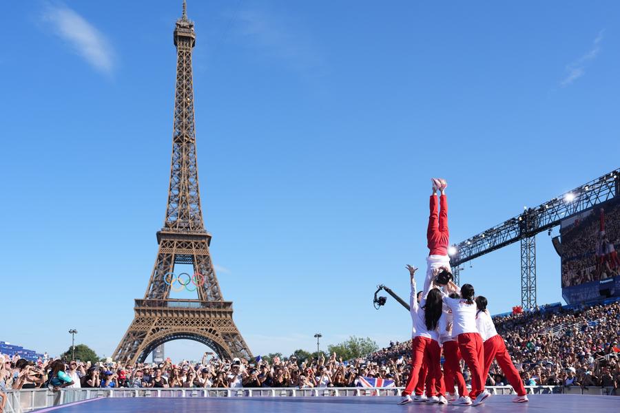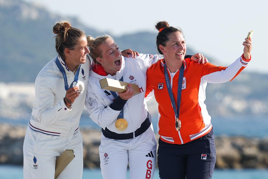 Gold medallist Eleanor Aldridge (C) of Britain, silver medallist Lauriane Nolot (L) of France and bronze medallist Annelous Lammerts of Netherlands take selfies during the victory ceremony of women's kite of the sailing events of the Paris 2024 Olympic Games at the Marseille Marina in Marseille, France, Aug. 8, 2024. (Xinhua/Zheng Huansong)Laura Ester Ramos of the Netherlands reacts after the water polo women's semifinal match between Spain and the Netherlands at the Paris 2024 Olympic Games in Paris, France, Aug. 8, 2024. (Xinhua/Wang Yuguo)Sofia Raffaeli of Italy competes during the individual all-round qualification of rhythmic gymnastics at the Paris 2024 Olympic Games in Paris, France, Aug. 8, 2024. (Xinhua/Cheng Min)Ginevra Taddeucci of Italy competes during the women's 10km of marathon swimming at the Paris 2024 Olympic Games in Paris, France, Aug. 8, 2024. (Xinhua/Xia Yifang)The artistic swimming team of China pose for photos with the Eiffel Tower at the Champions Park for the Paris 2024 Olympic Games in Paris, France, Aug. 8, 2024. (Xinhua/Xue Yuge)Gold medalist Luo Shifang of China attends the awarding ceremony after the weightlifting women's 59kg competition at the Paris 2024 Olympic Games in Paris, France, Aug. 8, 2024. (Xinhua/Yang Lei)Tourists visit Shennongtan scenic spot in Shennongjia Forest District, central China's Hubei Province, Aug. 5, 2024. Located in the eastern part of the Qinba mountains, Shennongjia Forestry District, with the forest coverage of over 91 percent, has an average elevation of 1,700 meters. The average temperature here is lower than 20 degrees Celsius in summer, making it a popular destination for tourists. (Xinhua/Wu Zhizun)An aerial drone photo taken on Aug. 7, 2024 shows the scenery of Minghu Lake National Wetland Park in Zhongshan District of Liupanshui, southwest China's Guizhou Province. (Xinhua/Tao Liang)Workers of Dongfang Electric Wind Power Co., Ltd. produce offshore wind turbines of 18-megawatt at the Fujian Three Gorges Offshore Wind Power International Industrial Park in Fuqing City, southeast China's Fujian Province, Aug. 8, 2024. The industrial park, with a total investment of 4 billion yuan (about 557.7 million U.S. dollars), is the first full-industry-chain offshore wind power industrial park in China. (Xinhua/Jiang Kehong)Palestinians and foreign activists take cover from tear gas during a demonstration against the Israeli confiscation of land in Beit Jala, near the West Bank city of Bethlehem, Aug. 8, 2024. (Photo by Mamoun Wazwaz/Xinhua)U.S. Vice President Kamala Harris, the Democratic presidential nominee, and her running mate Tim Walz attend a campaign rally at an airport hangar outside Detroit, Michigan, the United States, Aug. 7, 2024. U.S. Vice President Kamala Harris and her running mate Tim Walz on Wednesday held rallies in Wisconsin and Michigan -- two key swing states Republican nominee Donald Trump's campaign has been aiming to flip this year. (Xinhua/Hu Yousong)A tourist dives into the water in Antalya, Türkiye, Aug. 7, 2024. (Mustafa Kaya/Handout via Xinhua)People are seen inside an apartment in a building that was demolished by Israeli forces in West Bank village of Dura near Hebron city, on Aug. 8, 2024. (Photo by Mamoun Wazwaz/Xinhua)■