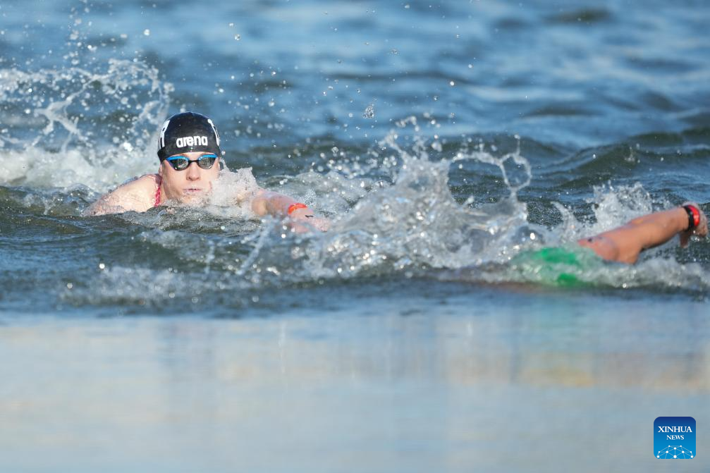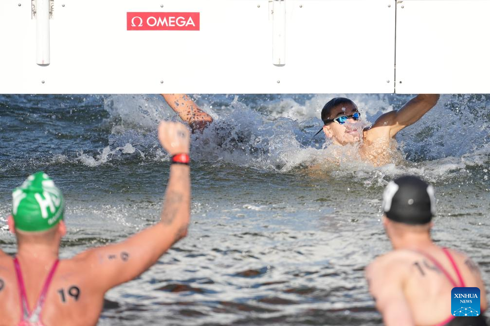 Oliver Klemet of Germany competes during the men's 10km of marathon swimming at the Paris 2024 Olympic Games in Paris, France, on Aug. 9, 2024. (Xinhua/Xue Yuge)