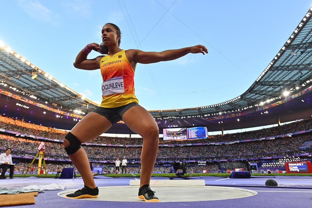 Germany's Yemisi Ogunleye secured her country's first athletics gold at these Games with a final throw of 20.00m in the women's shot put, relegating New Zealand's Maddison-Lee Wesche into silver medal position. China's Song Jiayuan took bronze, while defending Olympic champion Gong Lijiao finished fifth.