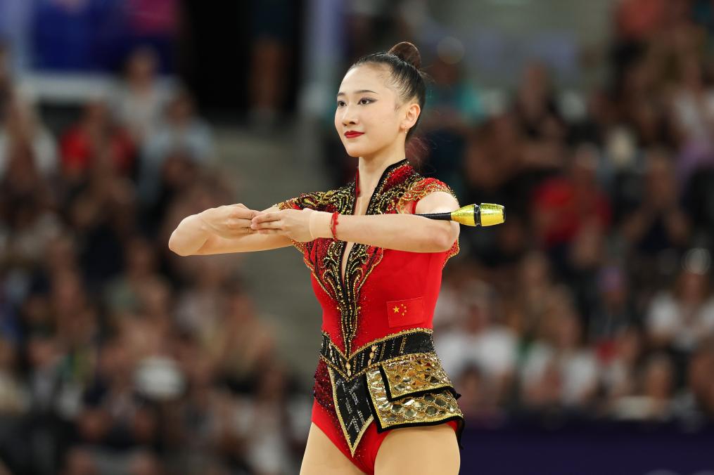 Earlier on Friday, China's rhythmic gymnastics team scored a total of 67.900 in the two rotations in five hoops and in three ribbons plus two balls during the group all-around qualification, placing fifth out of 14 teams.