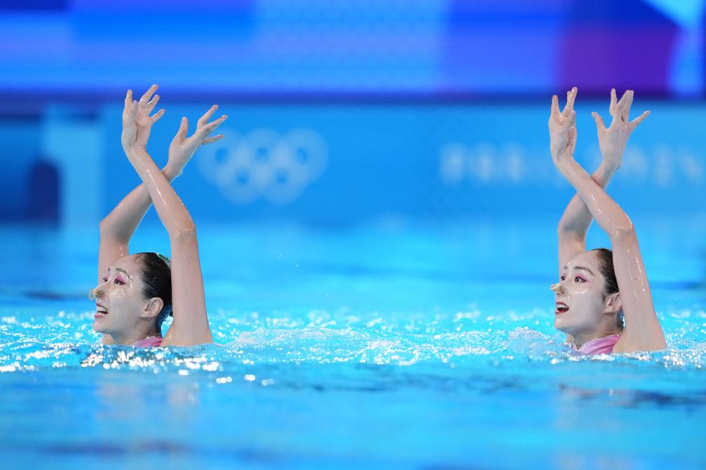 The women's duet at the Paris Olympics consists of a single final phase, with all 18 qualified pairs completing two routines, also including the free routine on Saturday. ■
