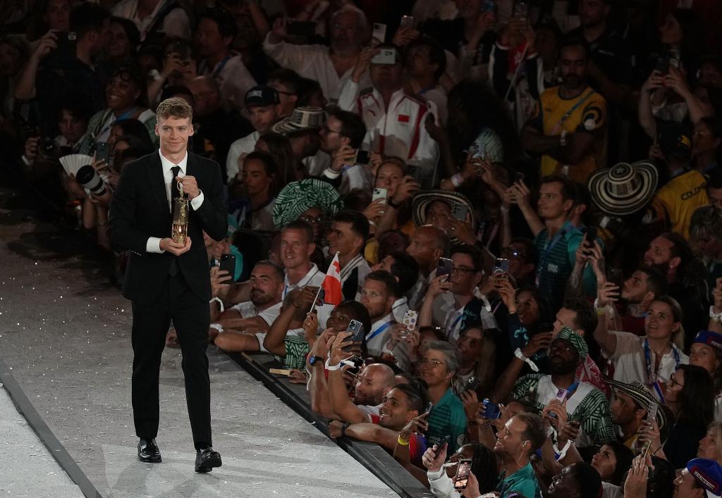 The spectacular celebration of the 33rd Summer Olympics began with the face of the Games, Leon Marchand, collecting the flame from the Jardin des Tuileries in the center of the city. The ceremony then moved on to the introduction of the flagbearers and the remaining athletes before a sold-out Stade de France and viewers around the world were treated to a breathtaking display of performance art, showcasing the unique flair of the French nation.