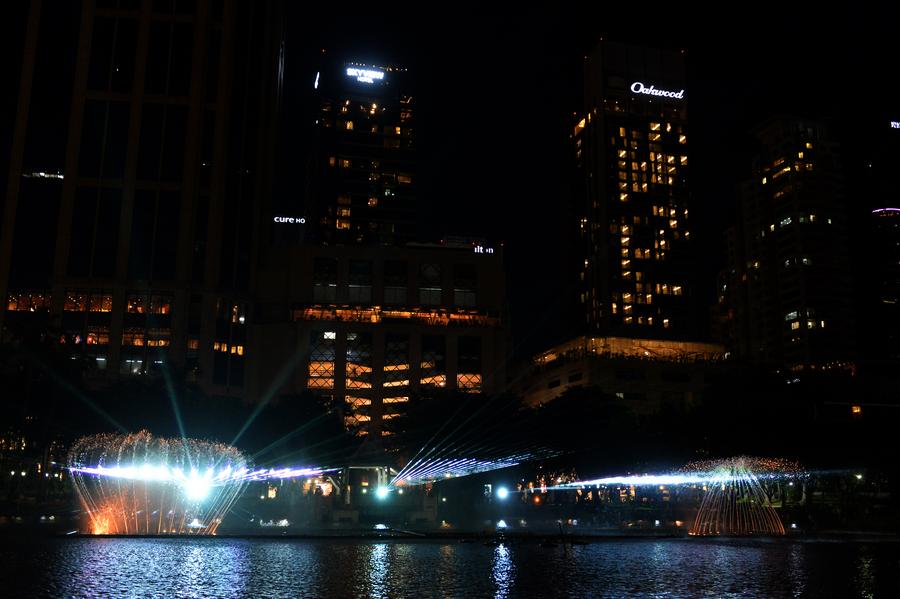 BANGKOK, Aug. 12 (Xinhua) -- On Sunday night, Benchasiri Park in Bangkok illuminates the sky with a stunning fountain show, celebrating the upcoming Mother's Day, which marks the royal birthday of Queen Sirikit on Monday.