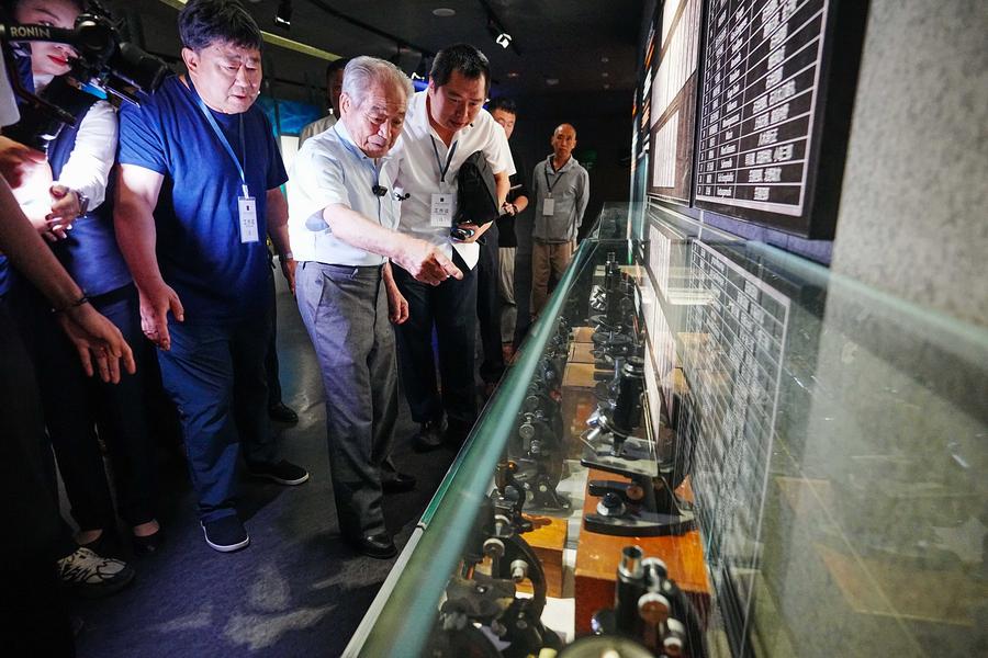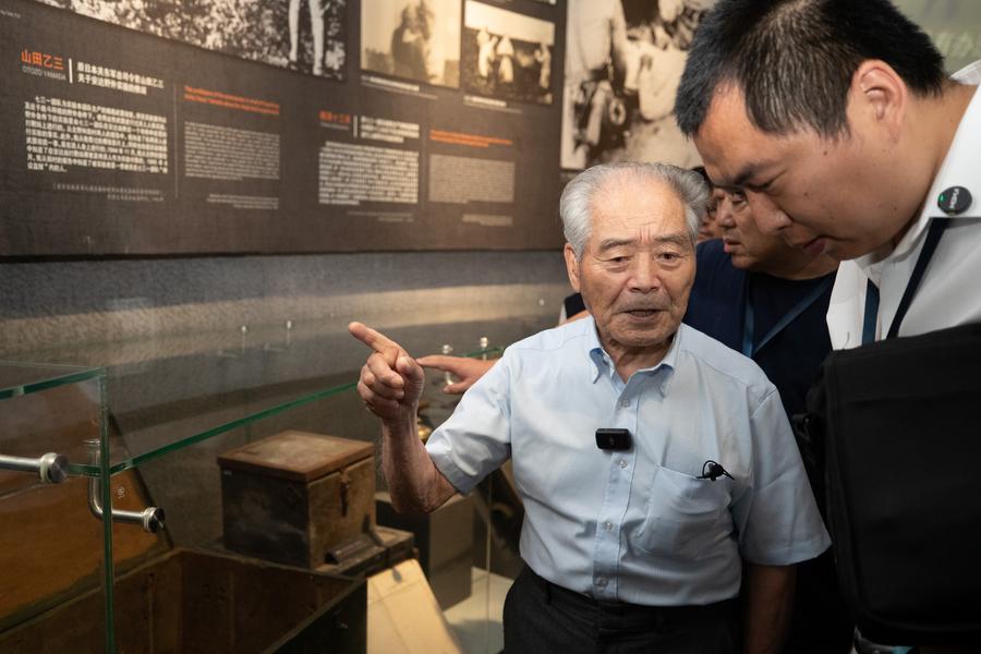 HARBIN, Aug. 14 (Xinhua) -- Hideo Shimizu, a former member of Unit 731, the notorious Japanese germ-warfare detachment during World War II, visited the Exhibition Hall of Evidences of Crime Committed by Unit 731 of the Japanese Imperial Army in Harbin, northeast China's Heilongjiang Province on Tuesday.