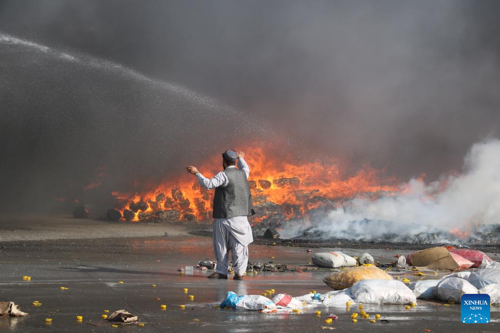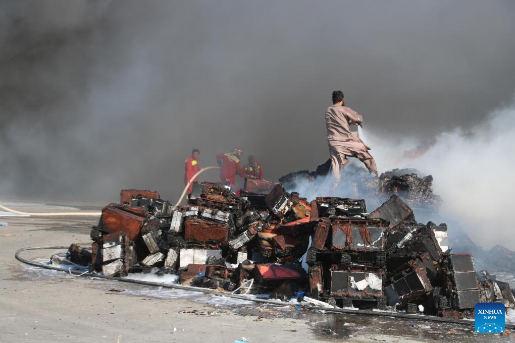KABUL, Aug. 15 (Xinhua) -- Several trucks carrying commercial goods have turned to ash as customs' parking lot caught fire in Herat city, the provincial capital of the western Afghanistan's Herat province, deputy to the Customs' office Mawlawi Esmatullah Yasar said Thursday.