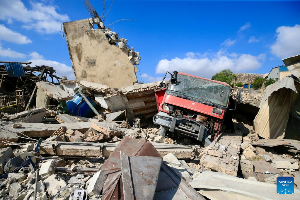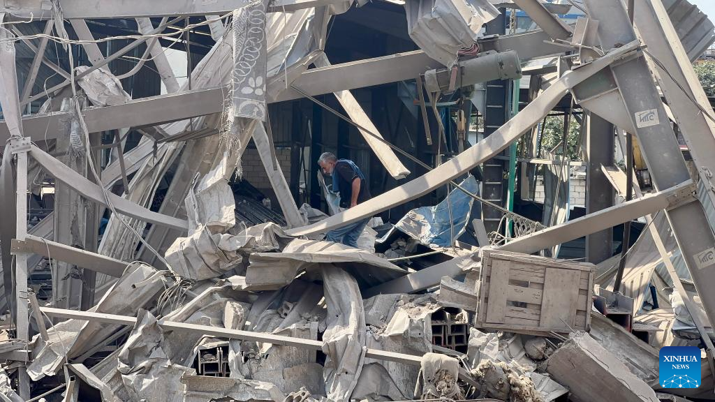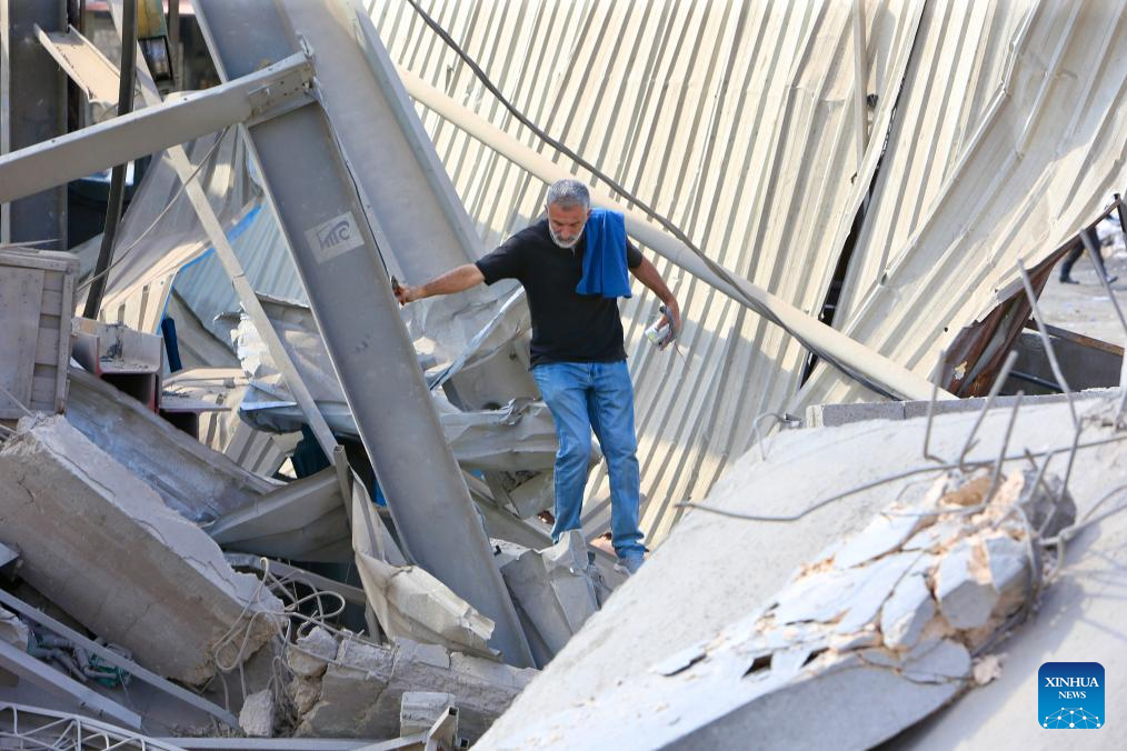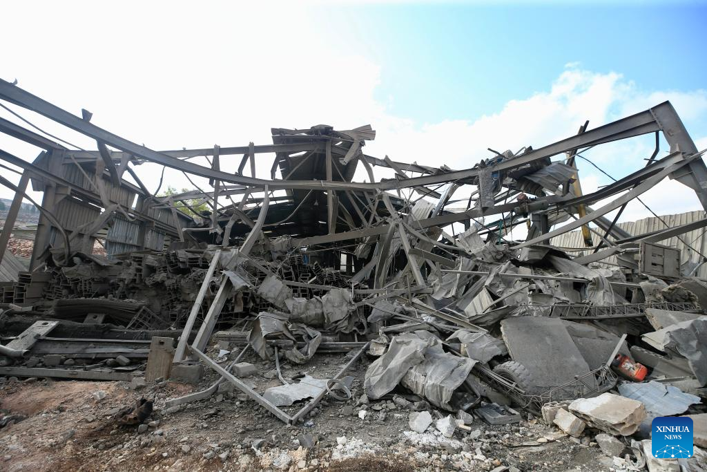 The sources, who spoke anonymously, told Xinhua that an Israeli warplane carried out a raid early Saturday, firing two air-to-ground missiles on the residential building in the middle of the industrial zone in Wadi al-Kfour, Nabatieh district, deep in southern Lebanon. (Photo by Ali Hashisho/Xinhua)