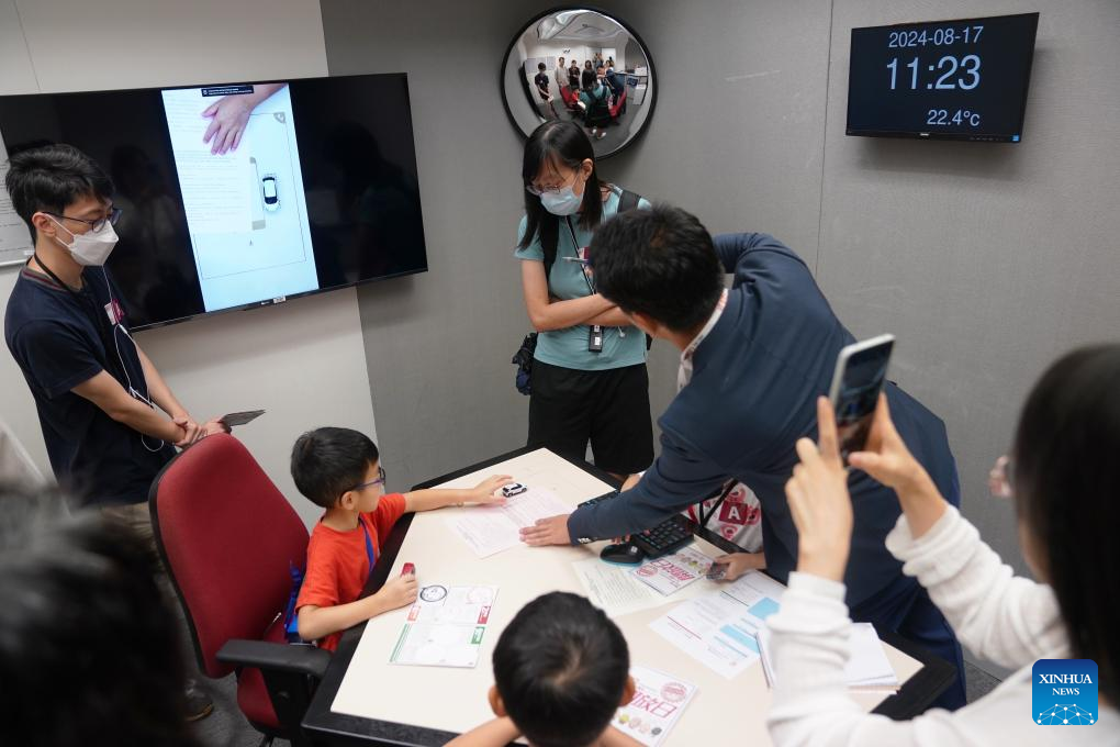 Citizens visit an identification parade suite at the building of the Independent Commission Against Corruption (ICAC) in Hong Kong, south China, Aug. 17, 2024. (Xinhua/Wang Shen)