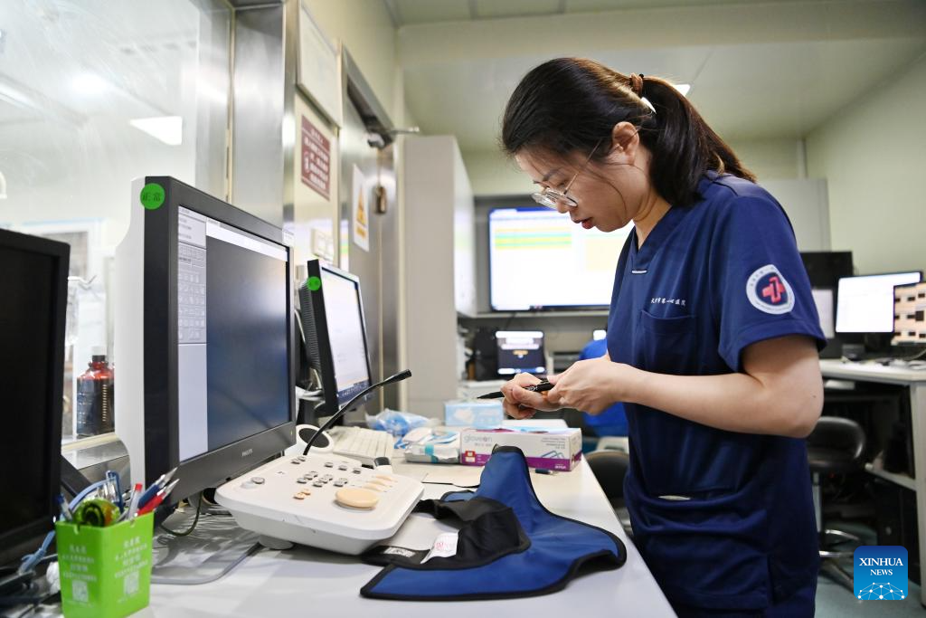 Wang Li prepares for a surgery at the Fukang Road branch of Tianjin First Central Hospital in north China's Tianjin, Aug. 15, 2024.