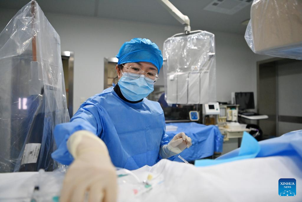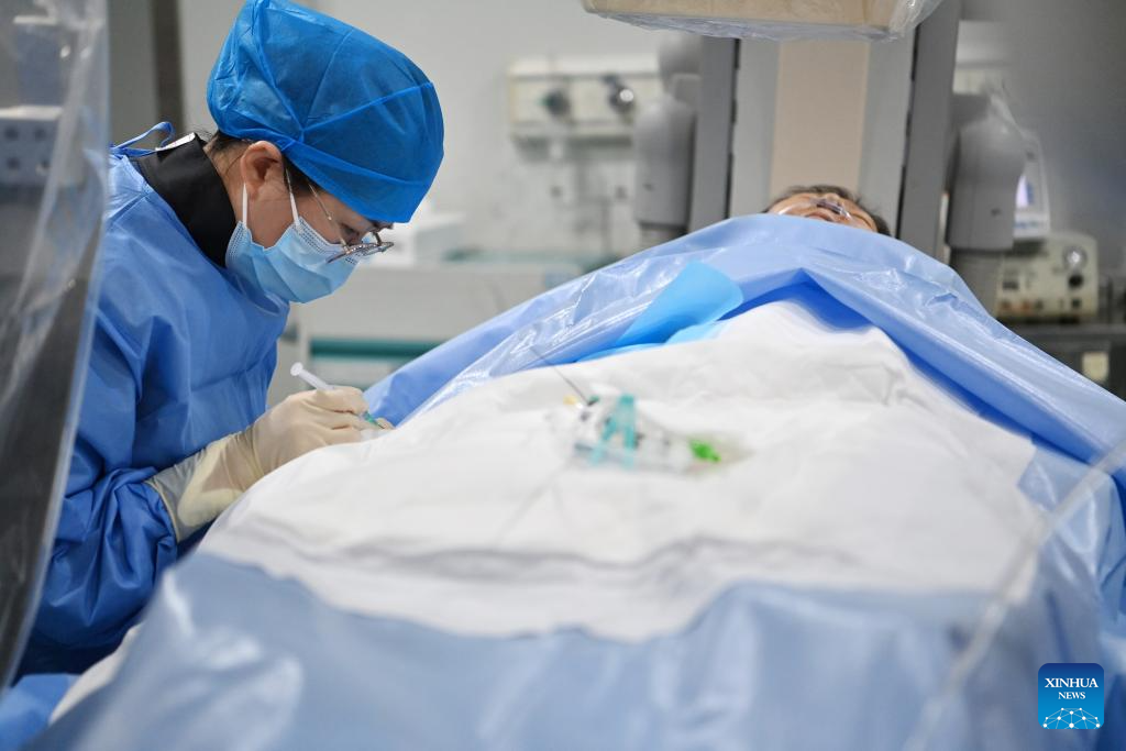 Wang Li performs a surgery on a patient at the Fukang Road branch of Tianjin First Central Hospital in north China's Tianjin, Aug. 15, 2024.
