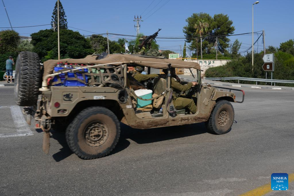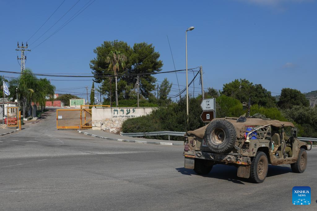 An Israeli combat vehicle patrols near the Moshav Ya'ara where a Hezbollah drone attack happened, in the Western Galilee of Israel, on Aug. 19, 2024. (Ayal Margolin/JINI via Xinhua)