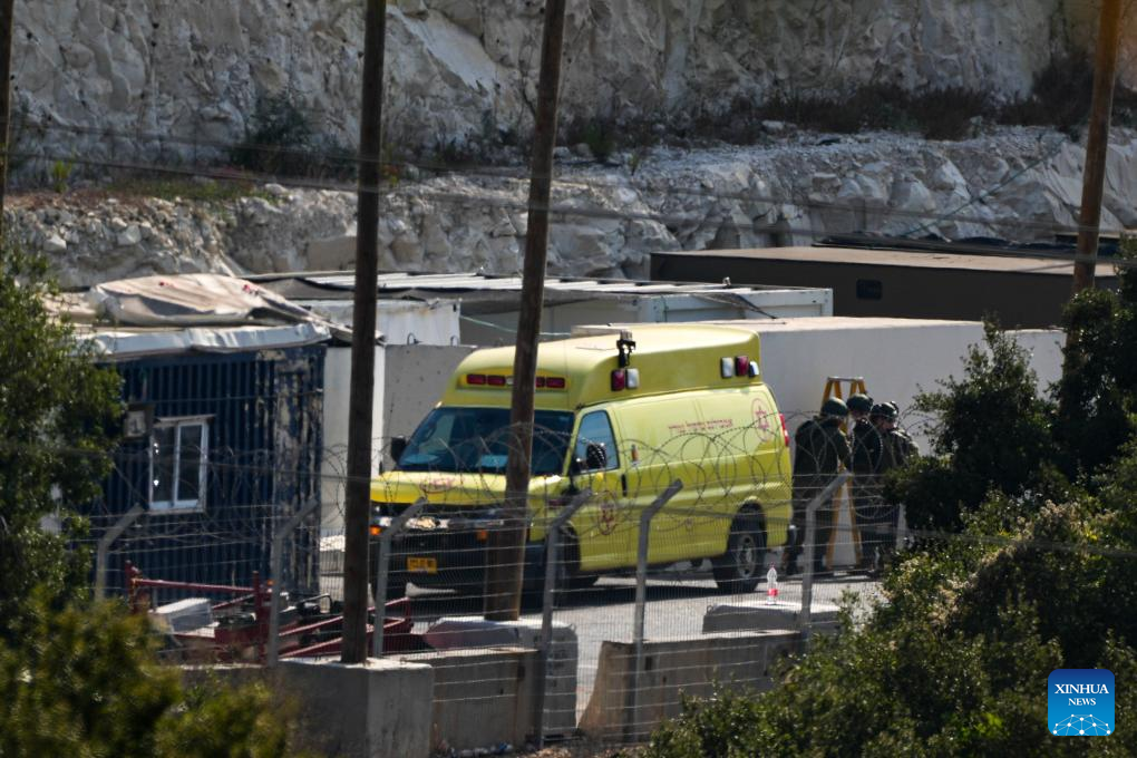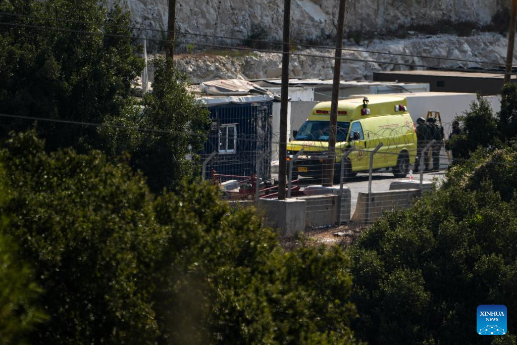 An ambulance is seen near the Moshav Ya'ara where a Hezbollah drone attack happened, in the Western Galilee of Israel, on Aug. 19, 2024. (Ayal Margolin/JINI via Xinhua)
