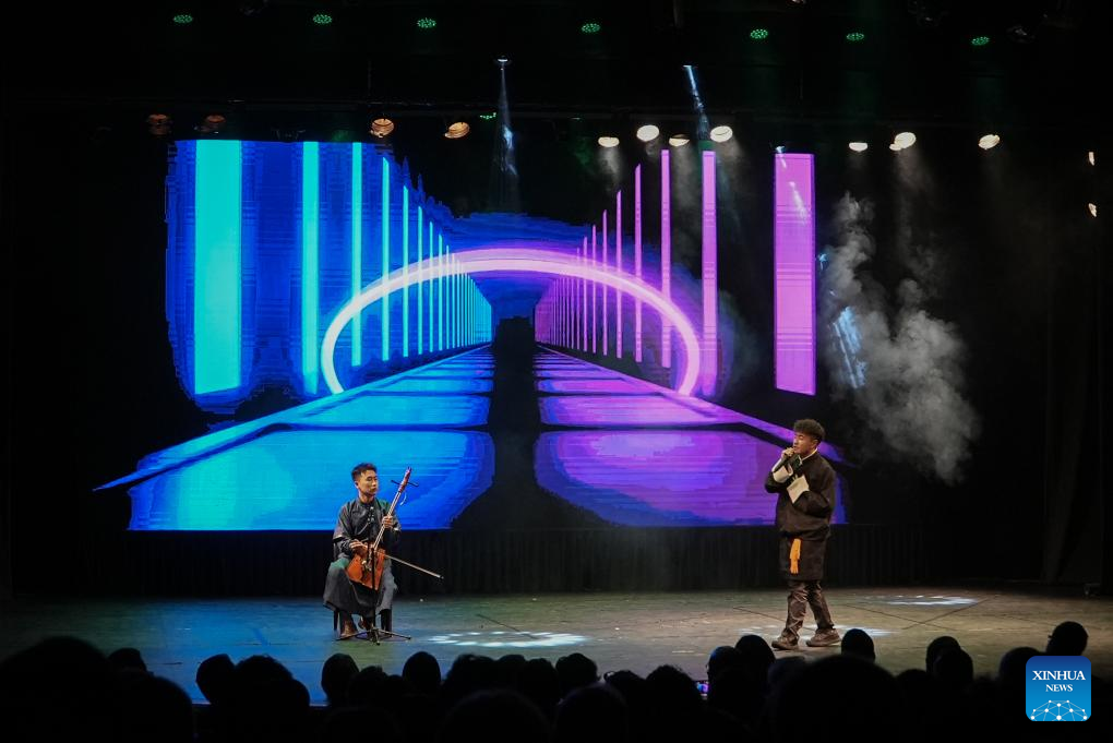 Artists from China's Northwest Minzu University perform at the "Colors of China: Ethnic Kaleidoscope" evening gala in Sao Paulo, Brazil, Aug. 18, 2024. (Photo by Paulo Lopes/Xinhua)
