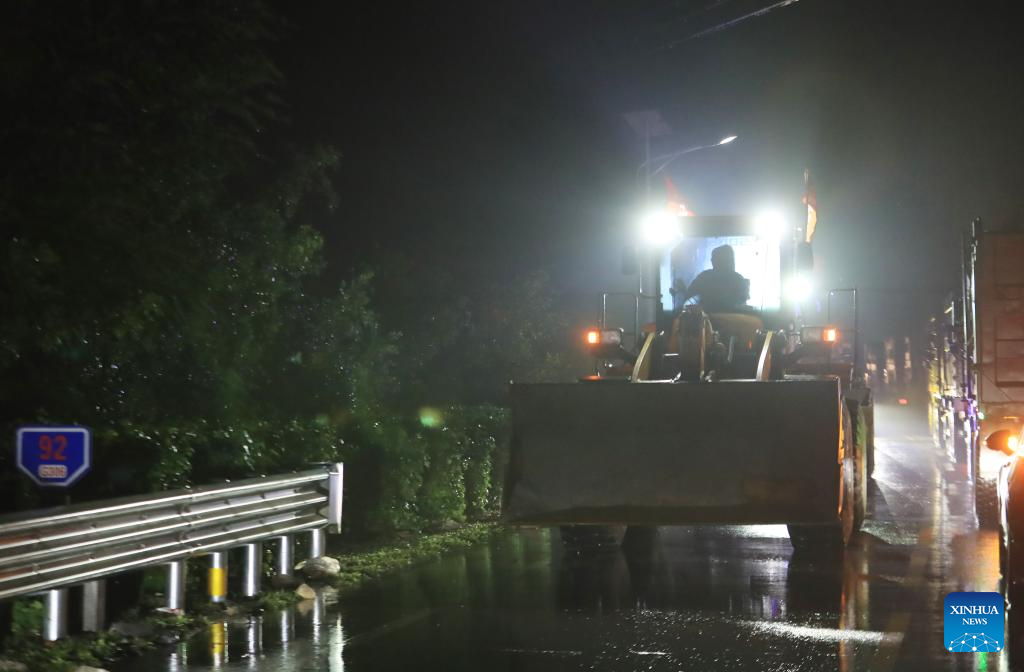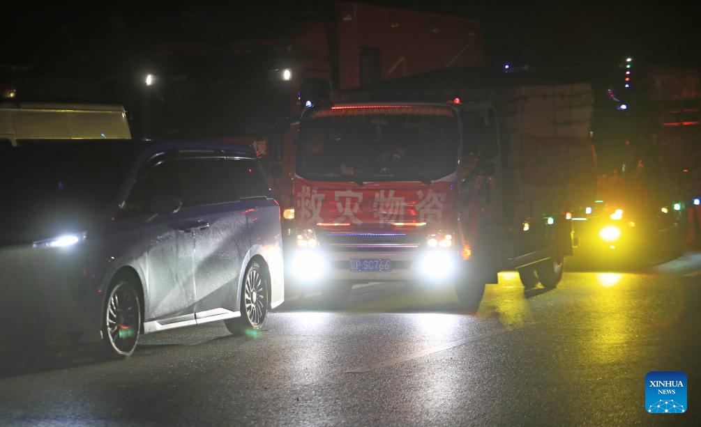 Vehicles move on a road to Leijiadian Township to join in rescue efforts in Jianchang County of Huludao City, northeast China's Liaoning Province, Aug. 20, 2024.