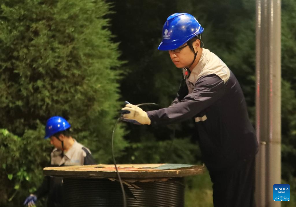 Staff members of Jianchang County branch of China Mobile work to restore communication facilities in Jianchang County of Huludao City, northeast China's Liaoning Province, Aug. 20, 2024.